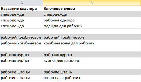 Travailler avec une longue liste de mots-clés est peu pratique. En général, ils sont regroupés selon un certain nombre de caractéristiques et travaillent ensuite avec chaque groupe individuel. Une liste de groupes de mots-clés peut vous aider à comprendre quelles sections sont importantes sur le site, et à créer une structure optimale.
